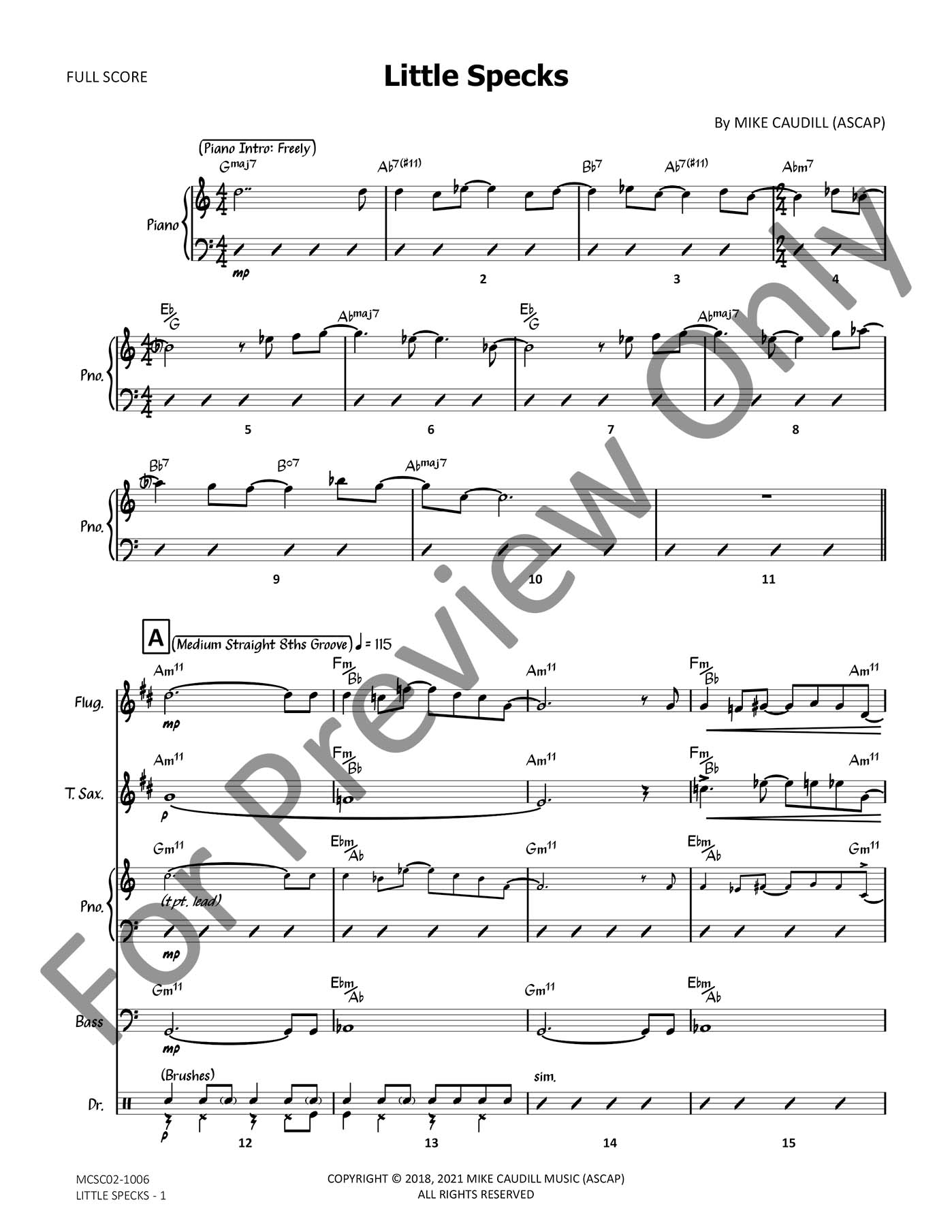 "Little Specks" - flug, tsax, pno, bass, dr - PDF Sample - View in Shop